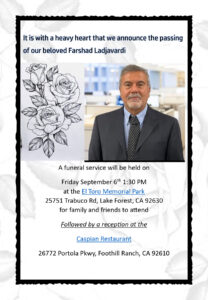 Our beloved Farshad Ladjavardi, A loving husband, father, & brother was born Feb 13, 1960, in Tehran and was the first child of Oscar & Farah Ladjavardi. He was very smart and great in math and science. A very humble and kind. His cousins loved him the most. He was a top student during his H.S. time and graduated with honors. He attended the prestigious Sharif University of Technology in 1977 and obtained his undergrad and Master’s degrees in Mechanical Engineering. He worked in the auto and aerospace industry for a few years after graduation. During his tenure, he contributed a few great designs in the auto industry before moving to the USA in 1994.