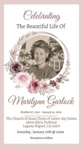 Funeral services will be held Saturday, January 27, at 10:00 a.m., at The Church of Jesus Christ of Latter-day Saints, 28291 Alicia Parkway, Laguna Niguel, California.