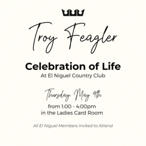 Troy is a huge sports fan, avid golfer, skier and loves football. He spent the majority of his free time at El Niguel Country Club playing rounds of golf with “the boys” and playing in his weekly card game. When not in California, Troy loved to travel with his family enjoying Hawaii, St. Thomas, Mexico, Australia, Italy and other European countries.