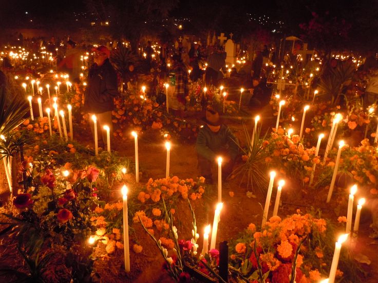 It can’t just be me, this is a crazy-beautiful tradition, right?! Can you imagine what it must be like to see a cemetery lit at night by beautiful lights, families gathered together, buckets of dark orange flowers and tasty foods? It doesn’t sound all that sad to me