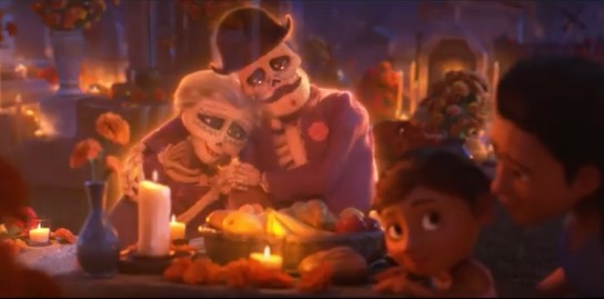 Disney/Pixar has captured my attention with their new film, Coco. This movie focuses on The Day of the Dead or, Dia de los Muertos , and the continuing bond that exists between the worlds of the living and of the dead. The holiday is celebrated widely in Mexican cultures from October 31st – November 2nd with activities ranging from making altars for the dead, praying for them, honoring their memory with the creation of calaveras (the small painted skulls) and bringing these and other gifts of Aztec marigolds and their favorite foods to the graves of their dead relatives.